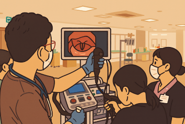 内視鏡は頭部にヘルメットを固定して行う場合もあります。