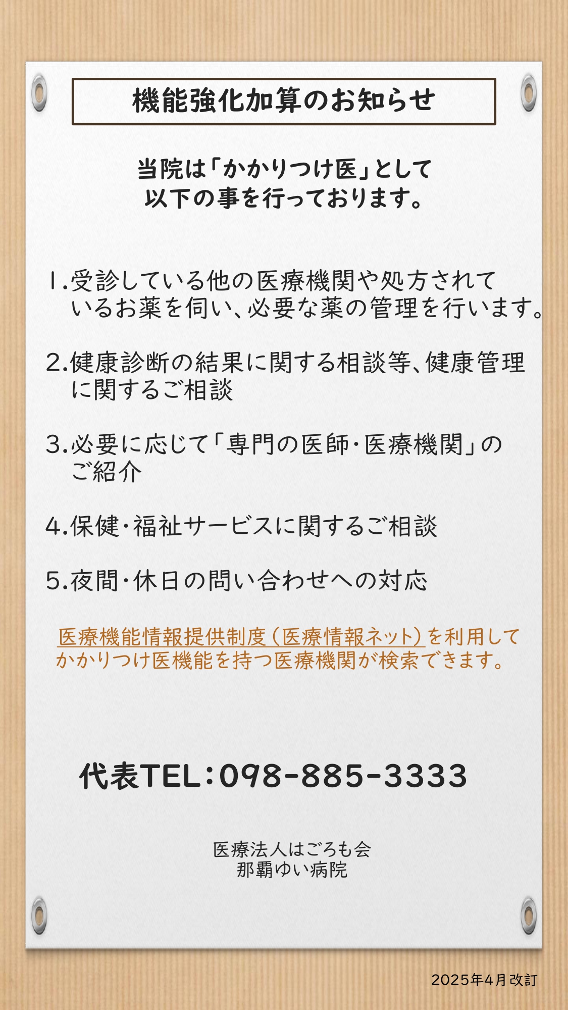 那覇ゆい病院 代表電話番号:098-885-3333